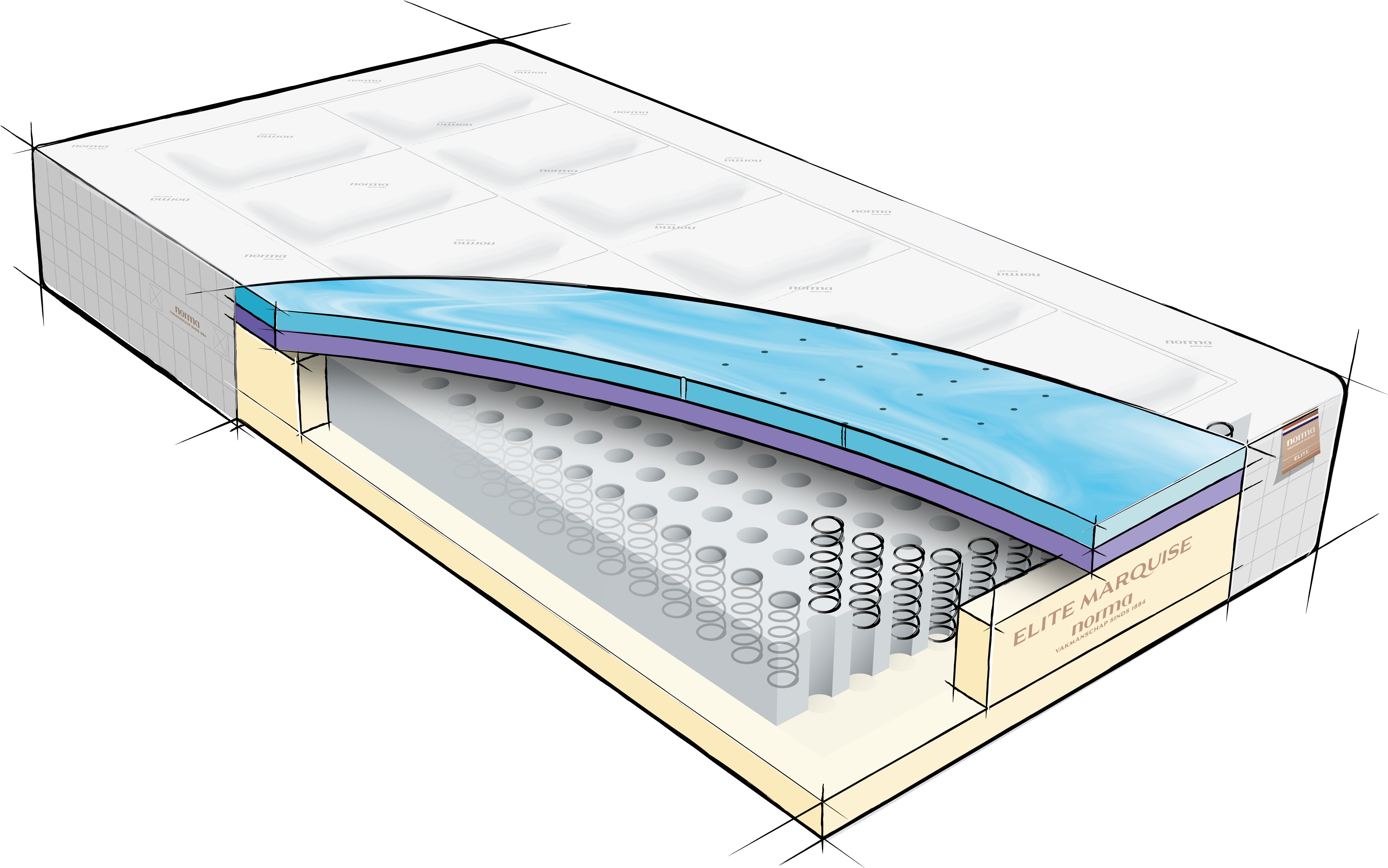 Kortom: het Norma Elite – Marquise matras biedt een luxueuze, drukverlagende ervaring met innovatieve ondersteuning én uitstekende ventilatie — nacht na nacht, keer op keer.